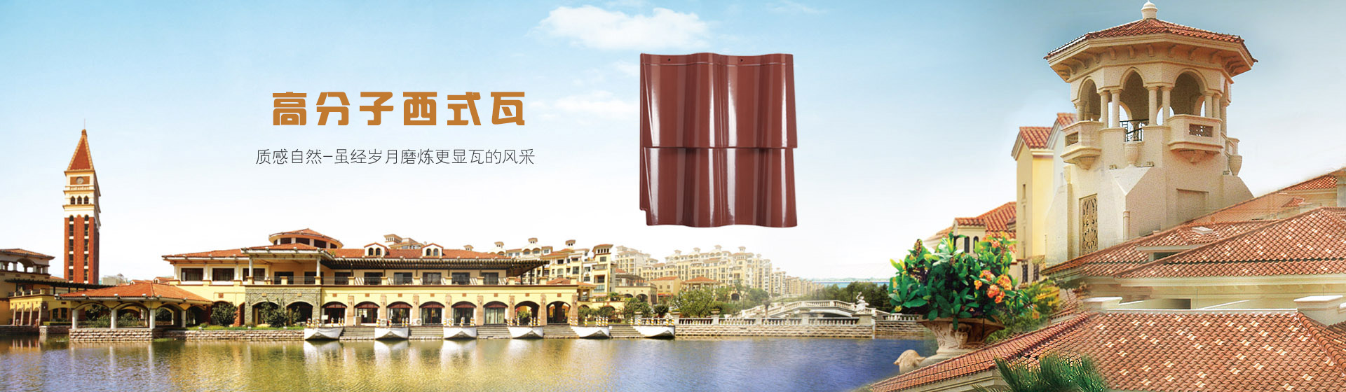 公司采用高分子材料高溫高壓模具成型的裝飾屋面瓦系列:仿古瓦、筒瓦、小青瓦、琉璃瓦、西式瓦等,集防水、隔熱、裝飾功能于一體。強(qiáng)度高、重量輕,安裝簡便快捷,不需要做防水層。耐候性好,使用壽命長、終身不漏水、不維修,徹底克服了傳統(tǒng)燒結(jié)瓦易松動、裂紋而滲漏的缺陷,是現(xiàn)代中高端建筑理想的用瓦選擇。
